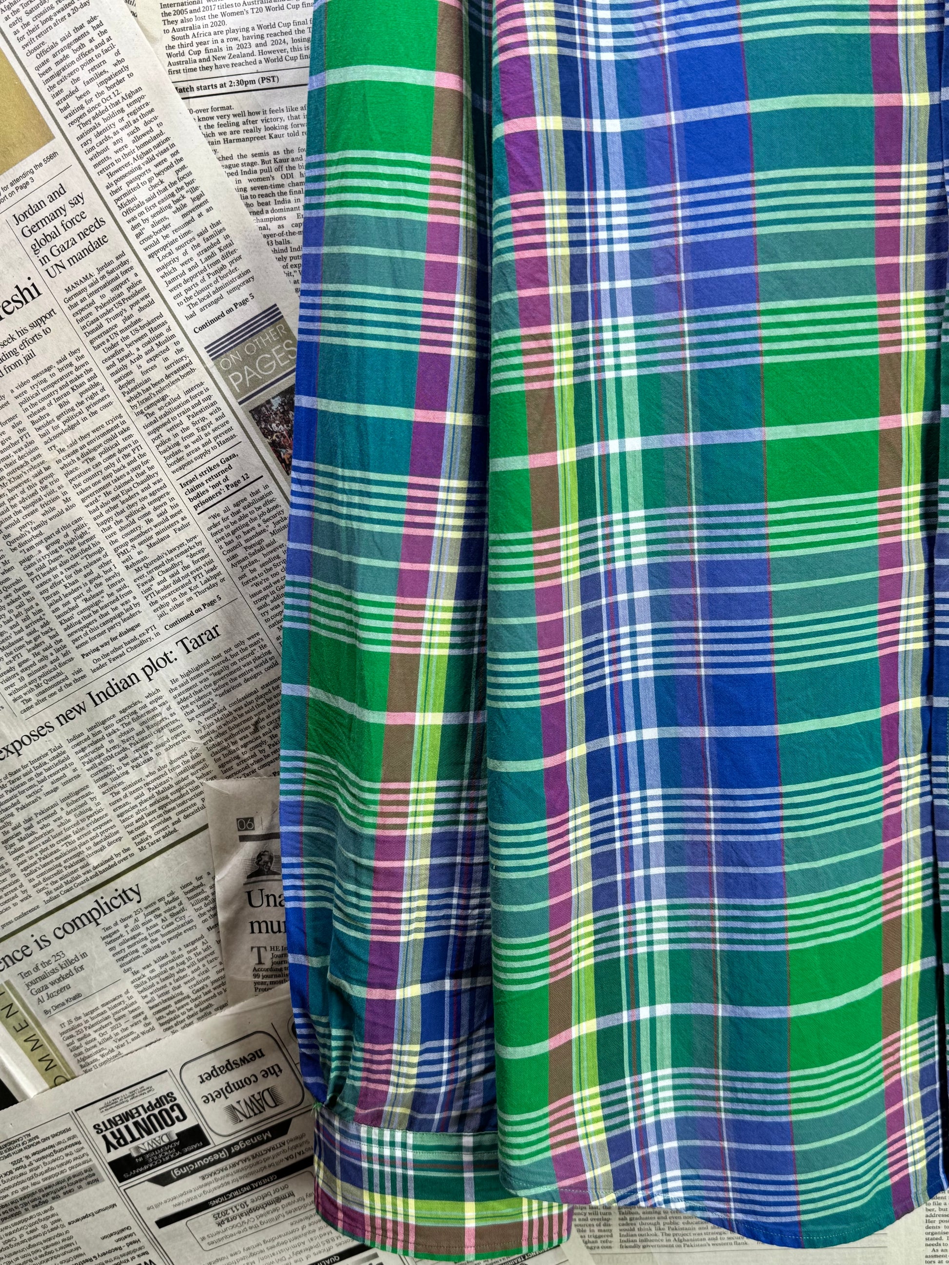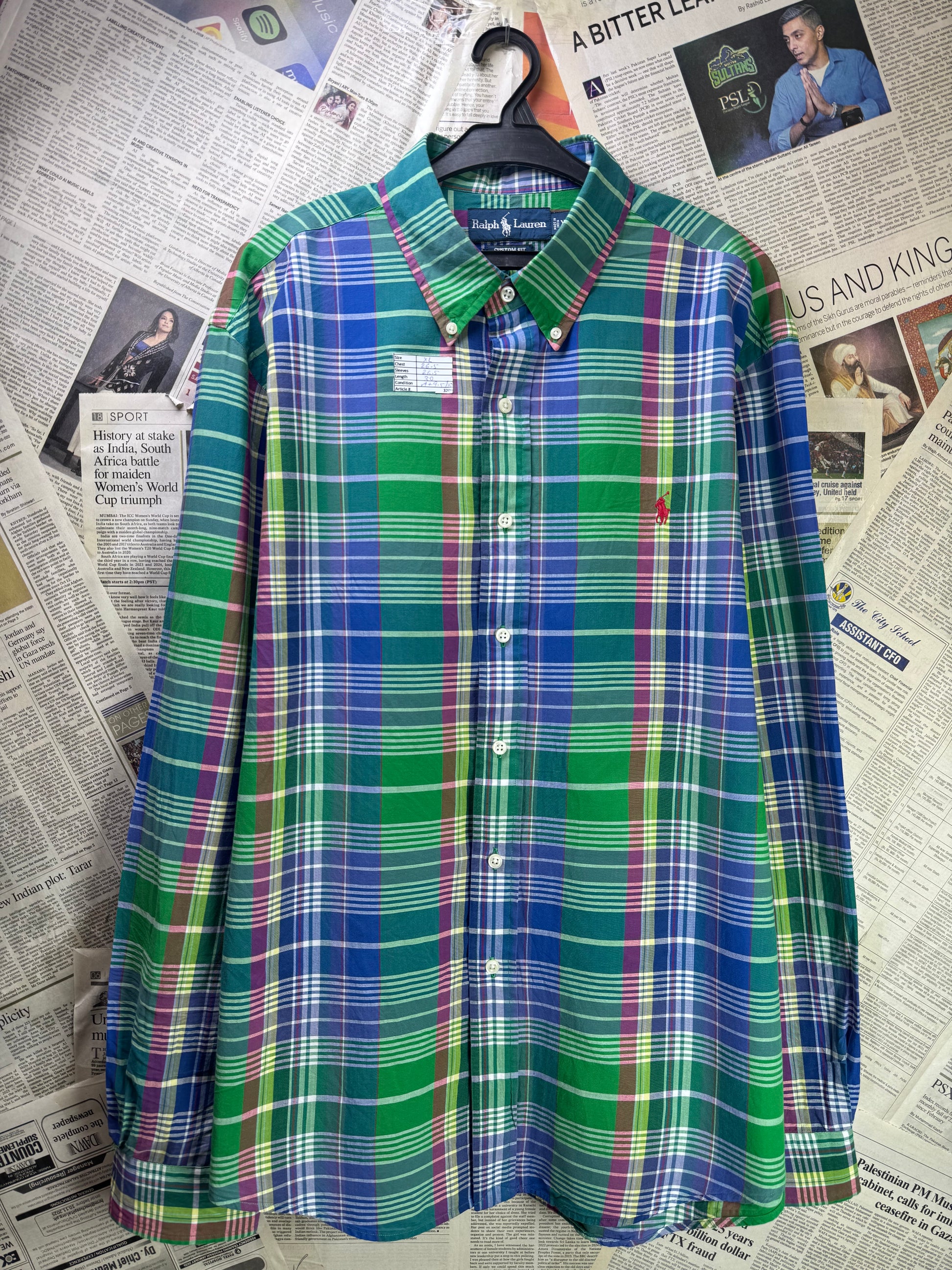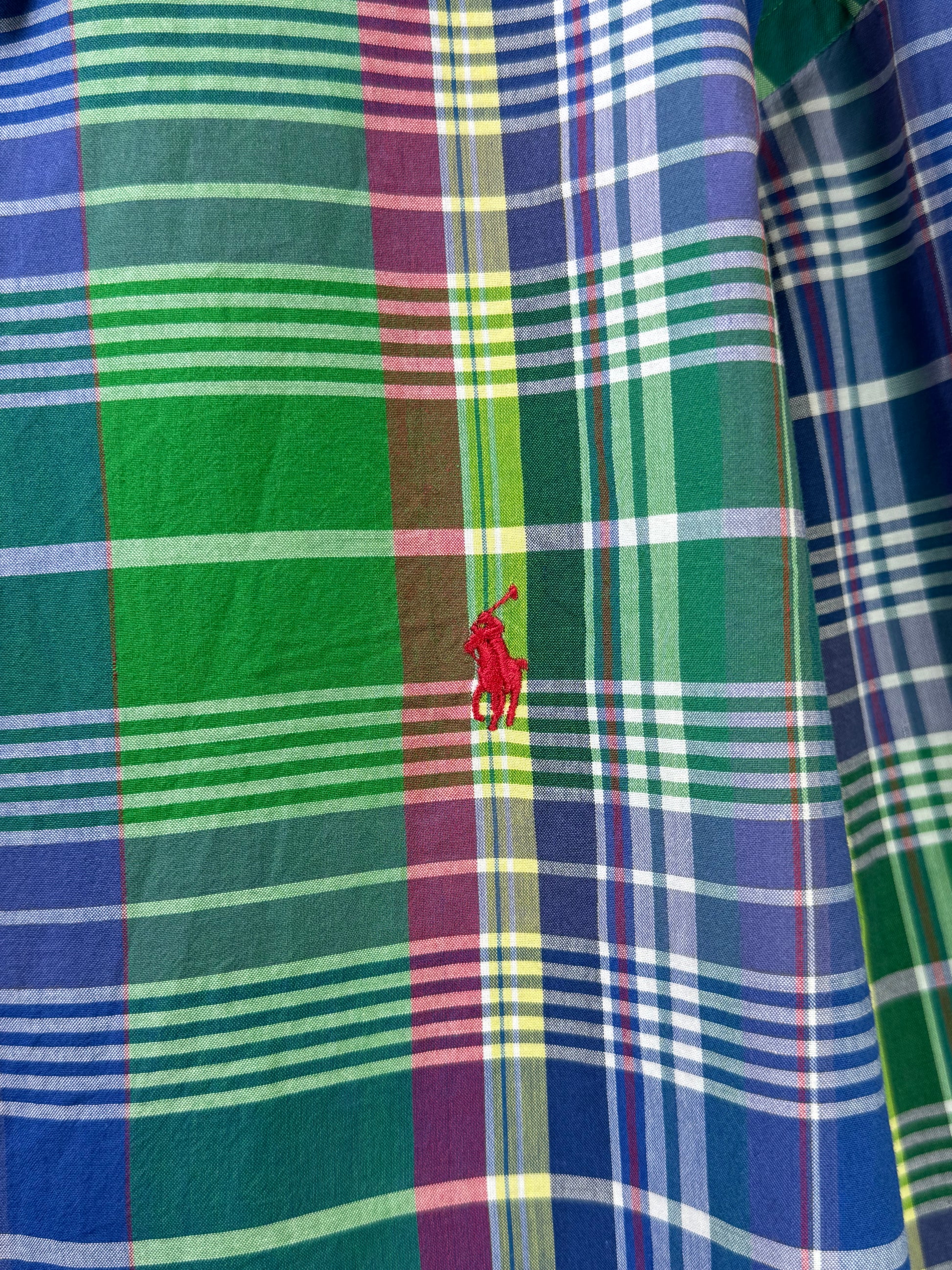 Ralph Lauren® XL | Chest 26.5" | Green & Blue Plaid Check | Shirt | Cotton | 3209